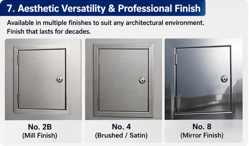 Beyond functional performance, stainless steel access panels contribute to a clean, professional appearance that suits a wide range of architectural environments. The material is available in several standard finishes: